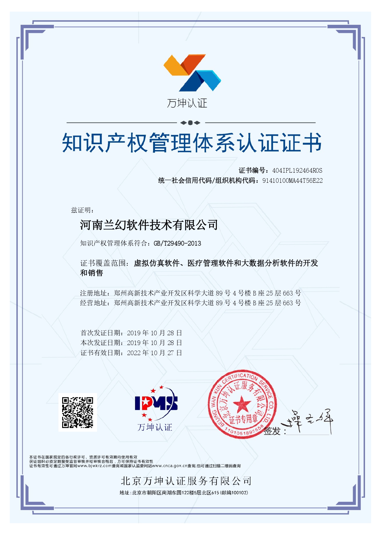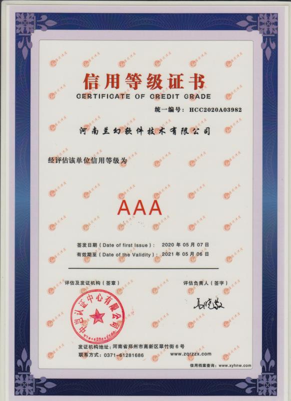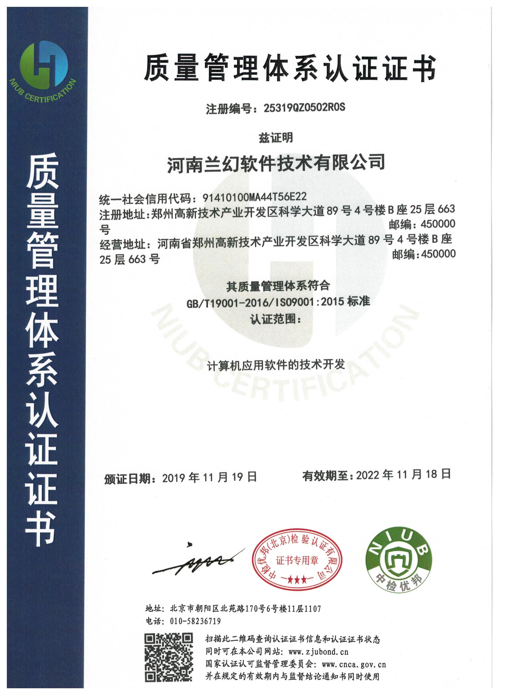2019年獲得河南軟件協(xié)會(huì)"雙軟"認(rèn)證、ISO9001質(zhì)量管理體系認(rèn)證、 知識(shí)產(chǎn)權(quán)管理體系認(rèn)證。