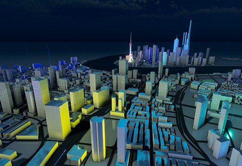 1、城市網(wǎng)絡(luò):園區(qū)樓宇中,基本還原城市主要建筑物的輪廓。
